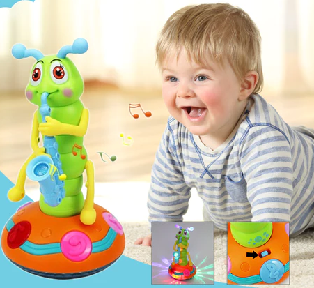 Saxapillar wiggles and play music, a fun caterpillar toy.