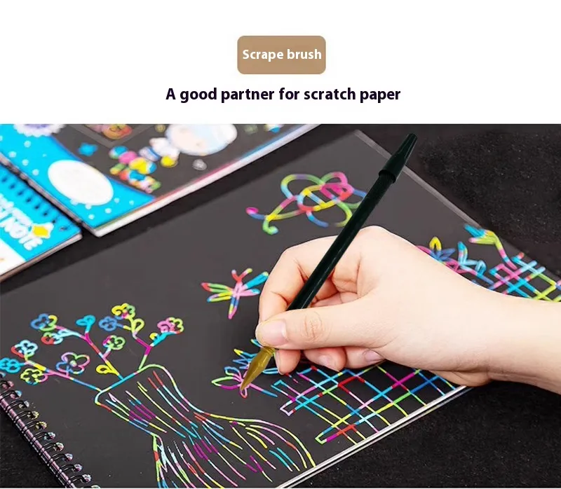 The Scratch Art Paper Brush Children's Art Tools Scratch Pen is the perfect tool for young artists looking to unleash their creativity. Whether you're creating stunning drawings, intricate designs, or vibrant works of art, this scratch pen and paper set offers a fun, unique way to express yourself. With its scratch-off technology, children can easily reveal colorful designs and patterns by simply scratching the surface of the special paper. This engaging art tool helps improve fine motor skills, creativity, and focus while providing hours of artistic fun!