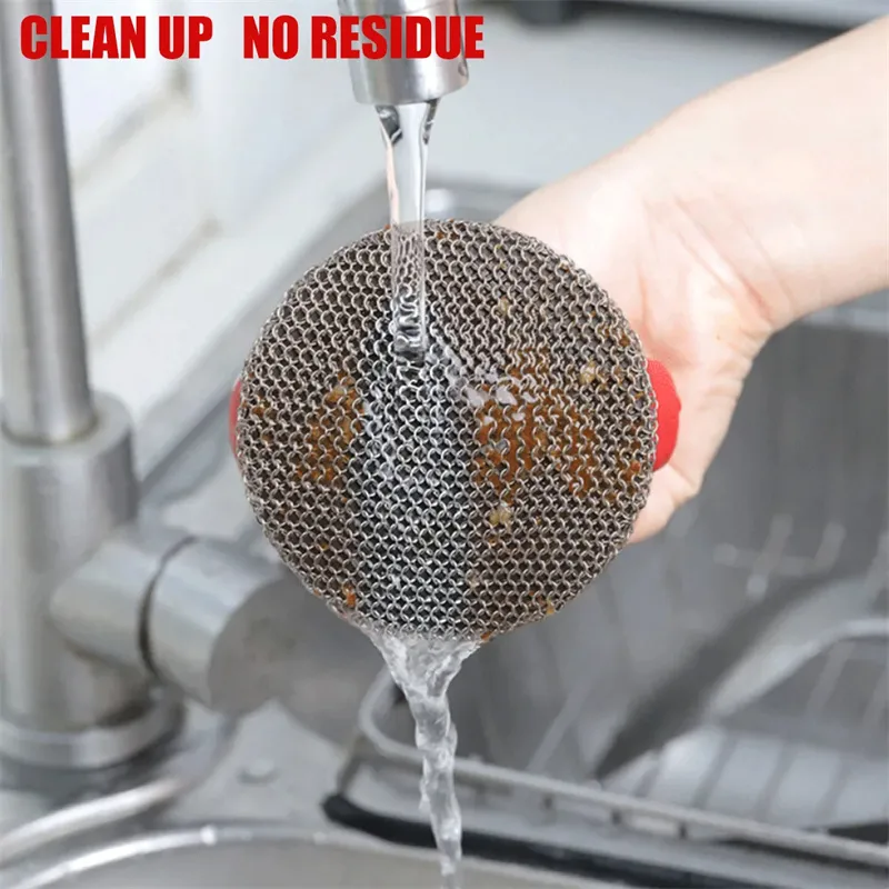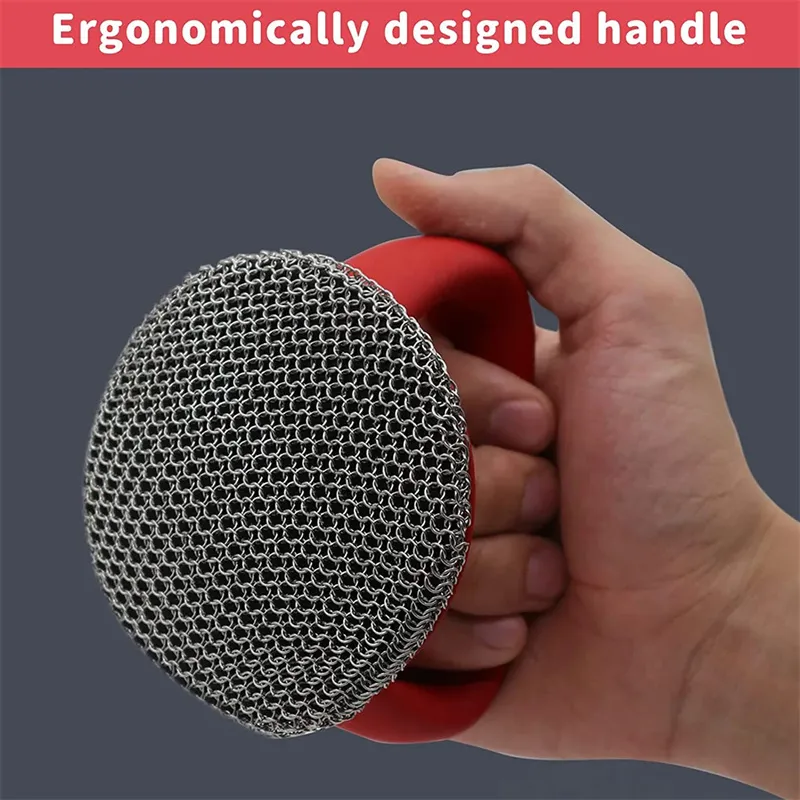 [Welded Stainless Steel Chain Mail] The cast iron chain mail scrubber is built for long-distance use. The chain mail is made of 316