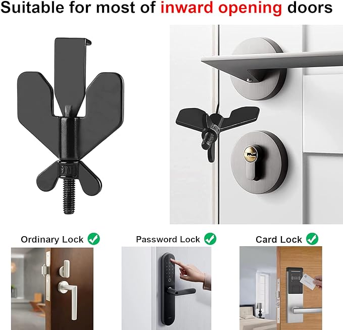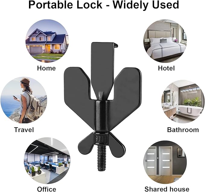 This portable door lock provides you with extra security and privacy, the door cannot be opened from the outside even with a key.Add an