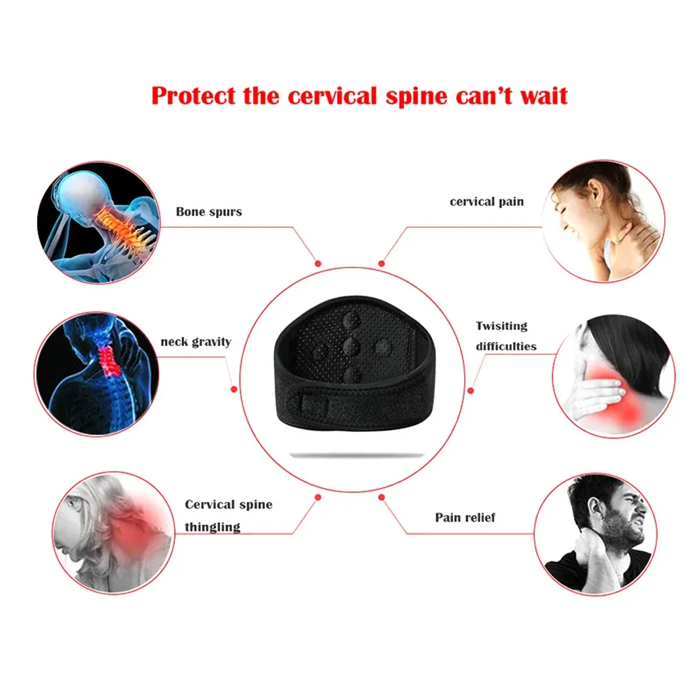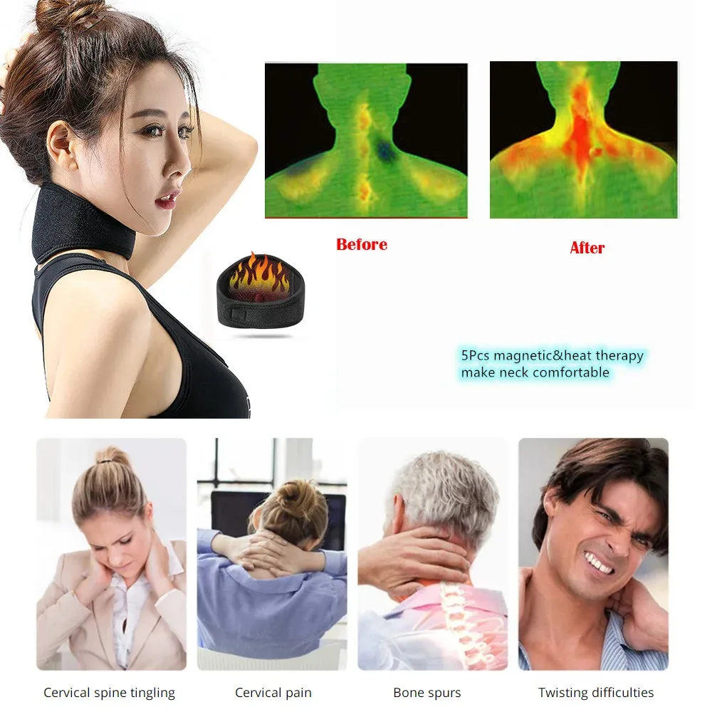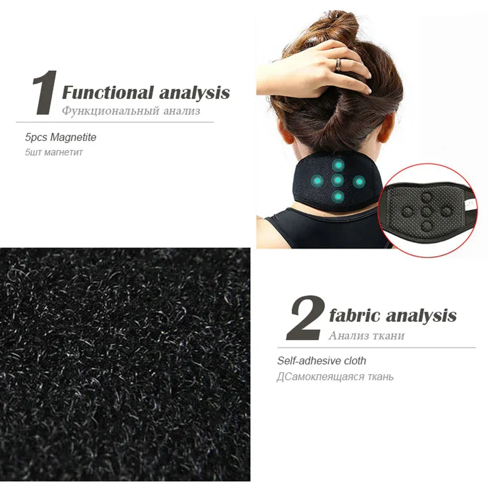 The Self-Heating Magnetic Therapy Neck Guard is a therapeutic accessory designed to provide relief from neck pain and discomfort. Utilizing the natural properties of embedded magnets and tourmaline, this neck support aims to enhance circulation, reduce muscle tension, and promote overall neck health.​