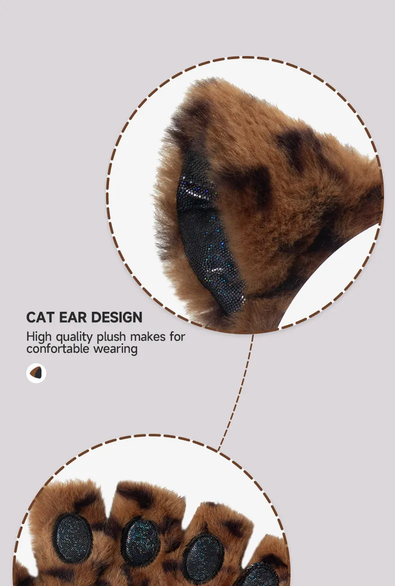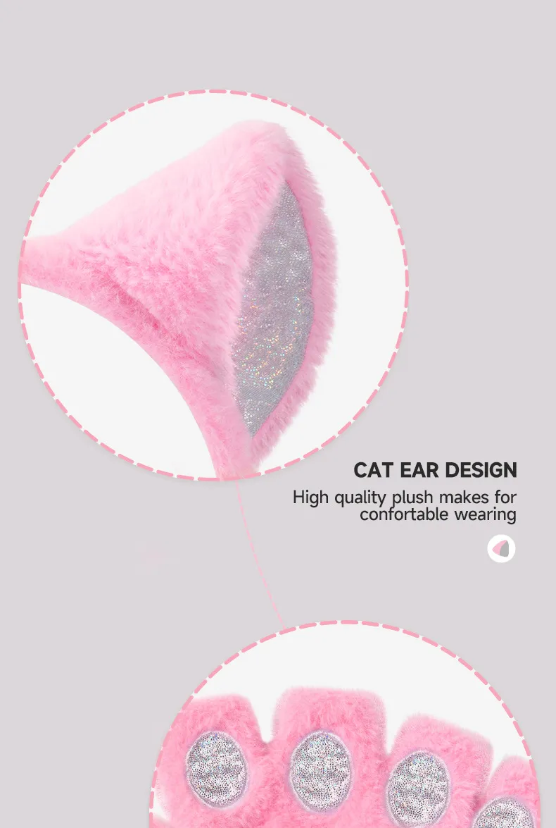Set Cosplay Cat's Paw Gloves Cat Ear Headband
