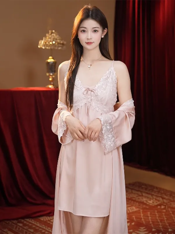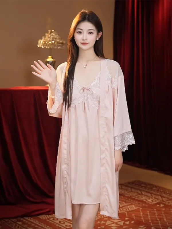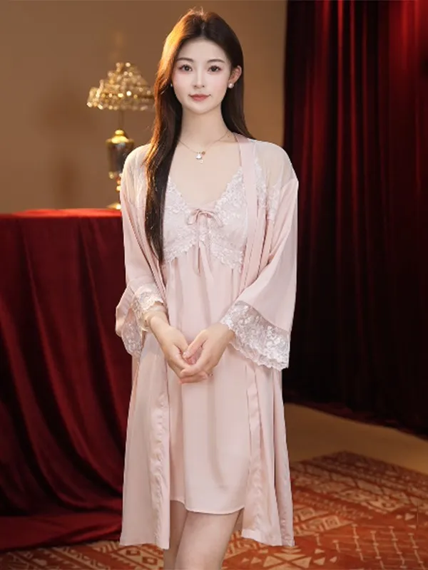 Sexy Nightdress Lace Bow Robe Hanging Two-Piece Set: Elegance, Comfort, and Seduction