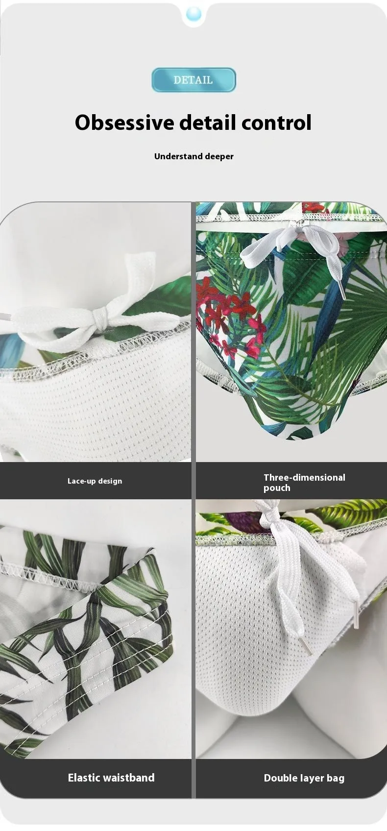 Eye-Catching Design: The tropical print of coconut and maple leaves makes these swimming trunks a standout piece, perfect