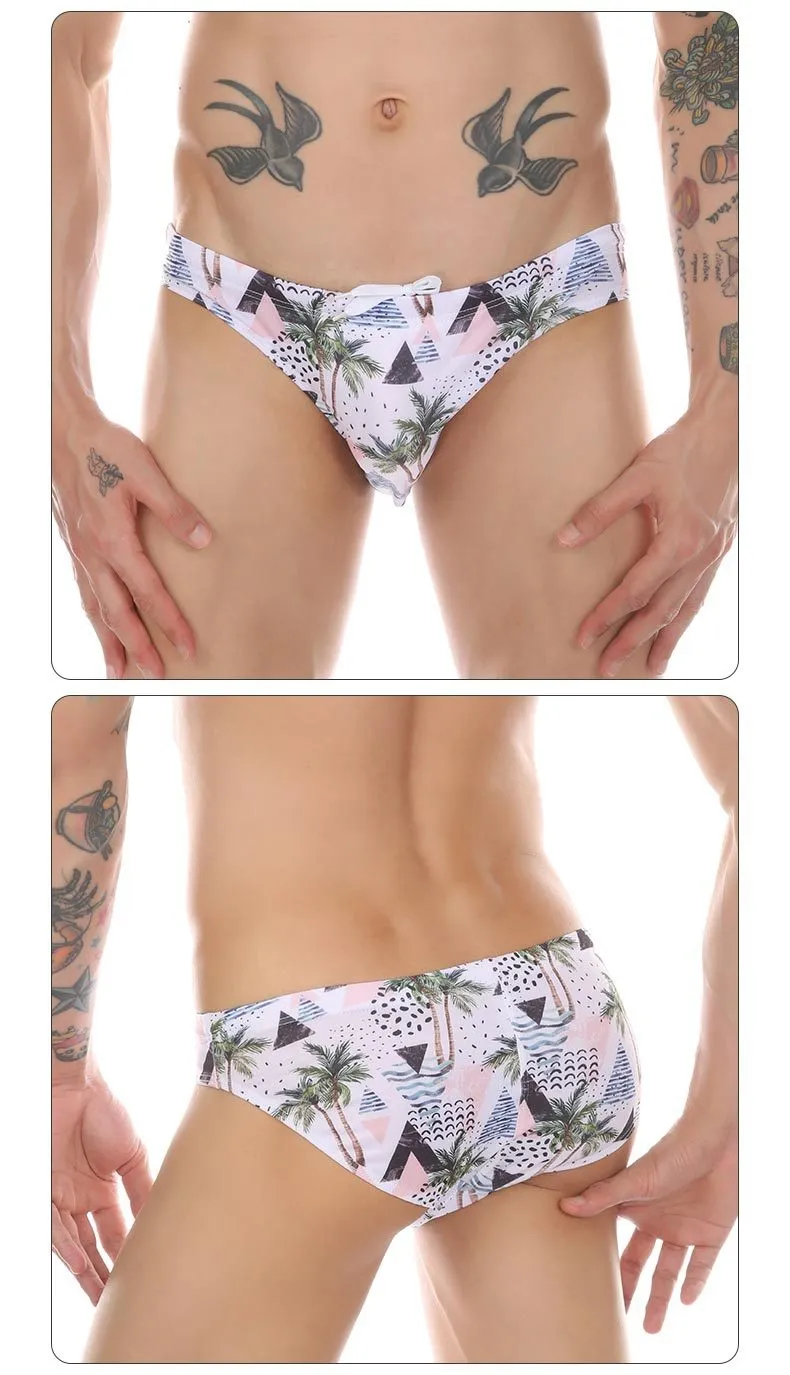 Sexy Print Swimming Trunks Plant Coconut Maple Leaf Trendy Beach Hot Spring Pants Multi-color