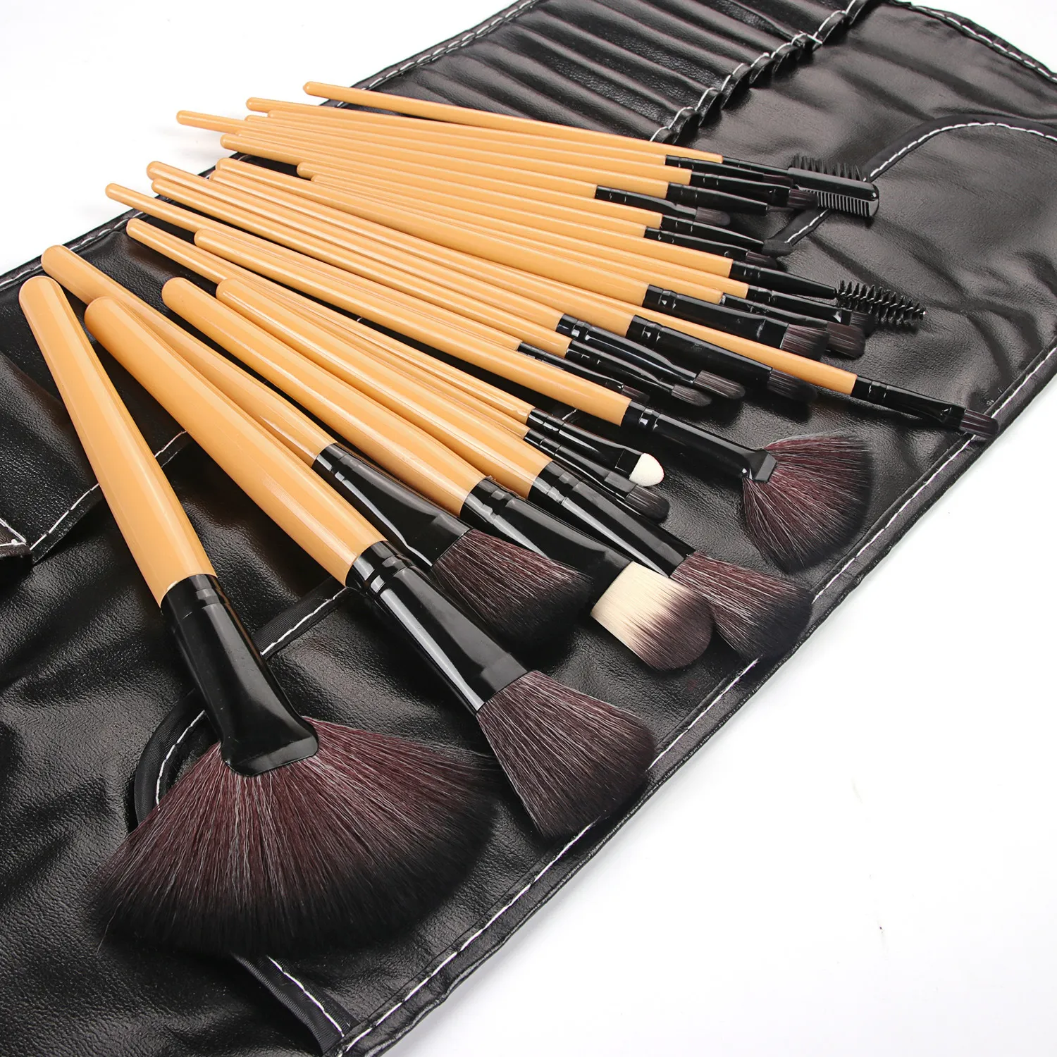 Shadowing 24 Makeup Brushes Set, Brownnatural Wood