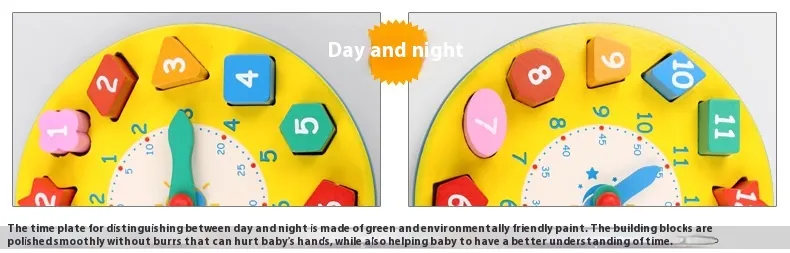 Shape Number Clock Teaching Aids Wooden