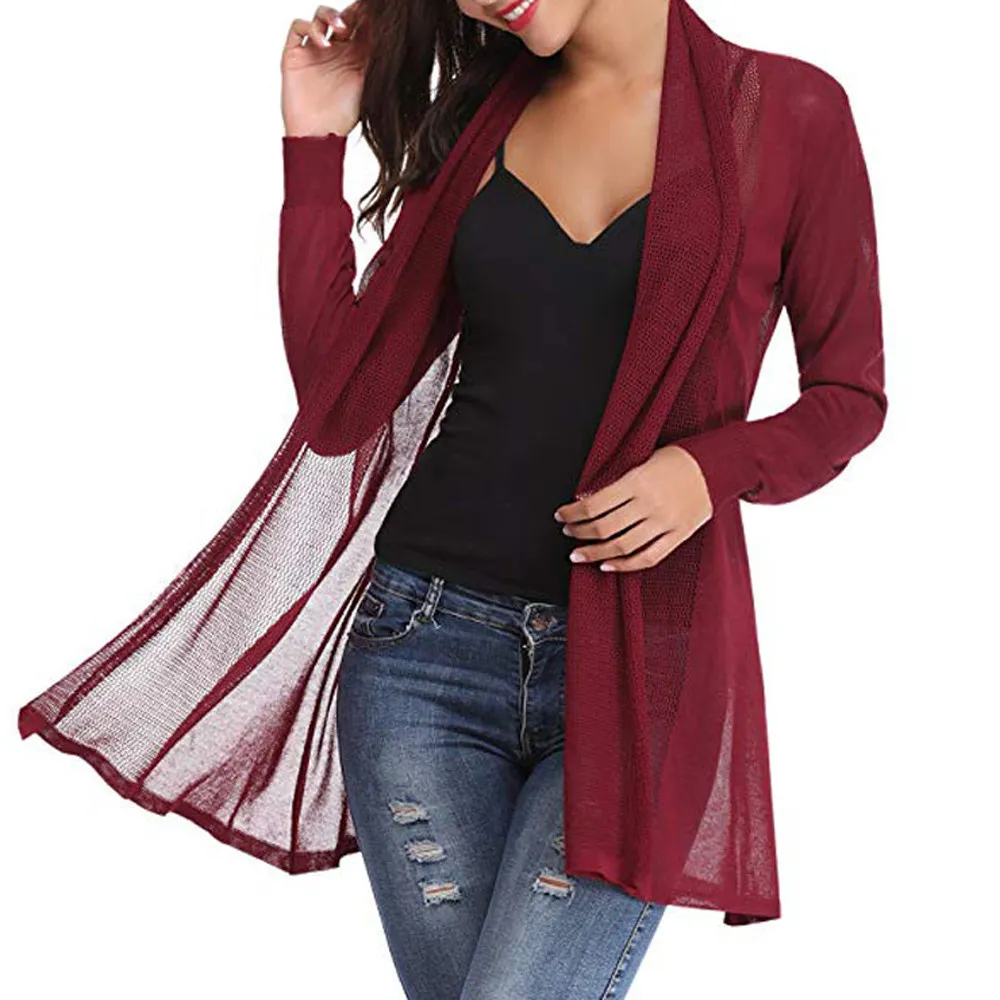 【Summer cardigans for women】 Cardigans for women with long sleeves, mid-length, sweater Open front cardigan