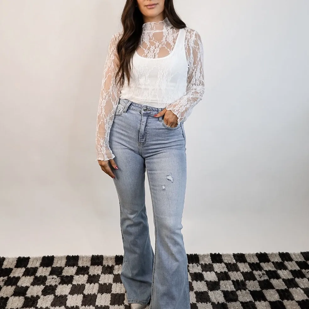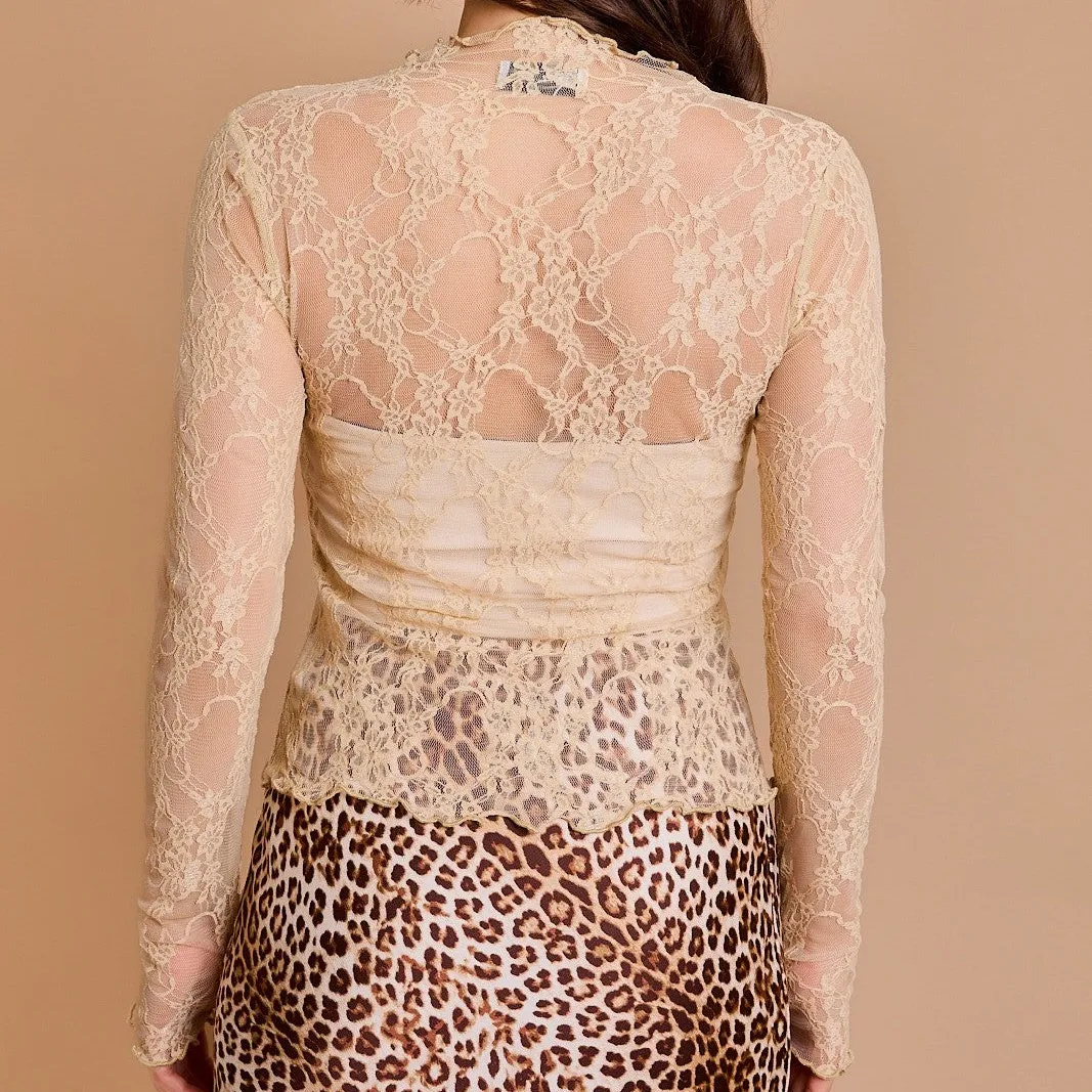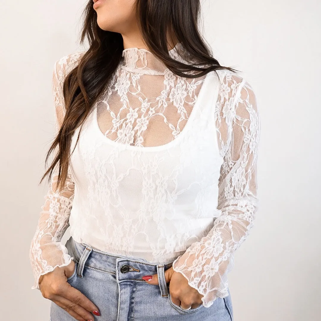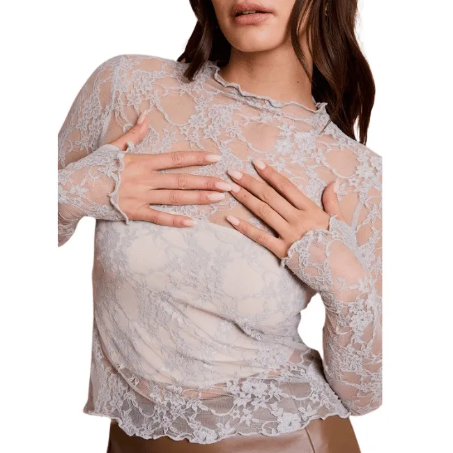 Sheer Mesh Sexy Pure Lace Slim-fit Base T-shirt