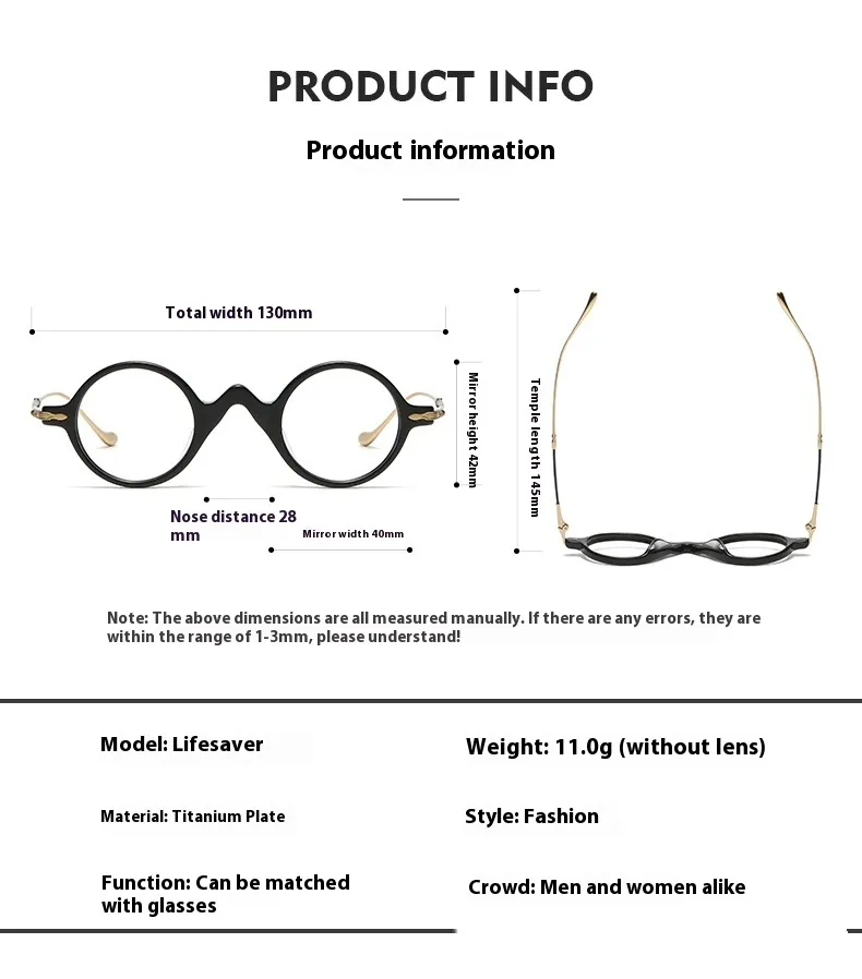 Sheet Metal Eyeglass Frame Fashion Retro Small Face With Myopic Glasses Option Pure Titanium Glasses Rim Men