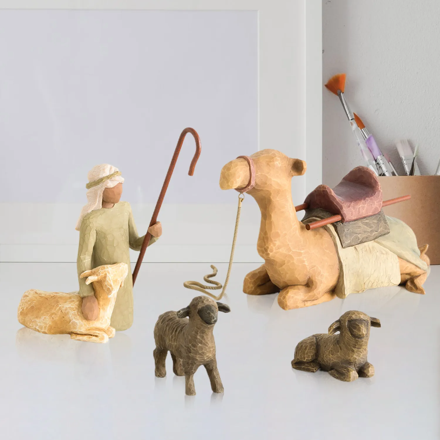Each figurine is carefully painted with warm, natural colors that highlight the shepherd’s robes, staff, and expressions.