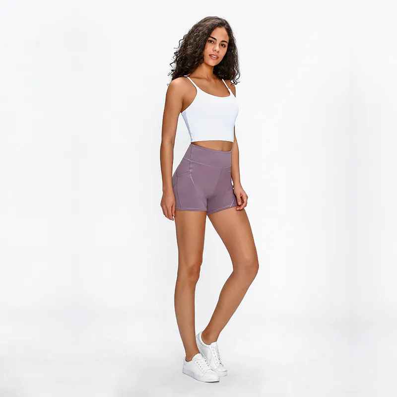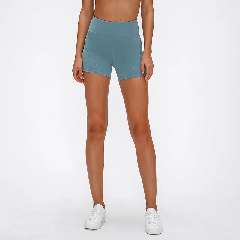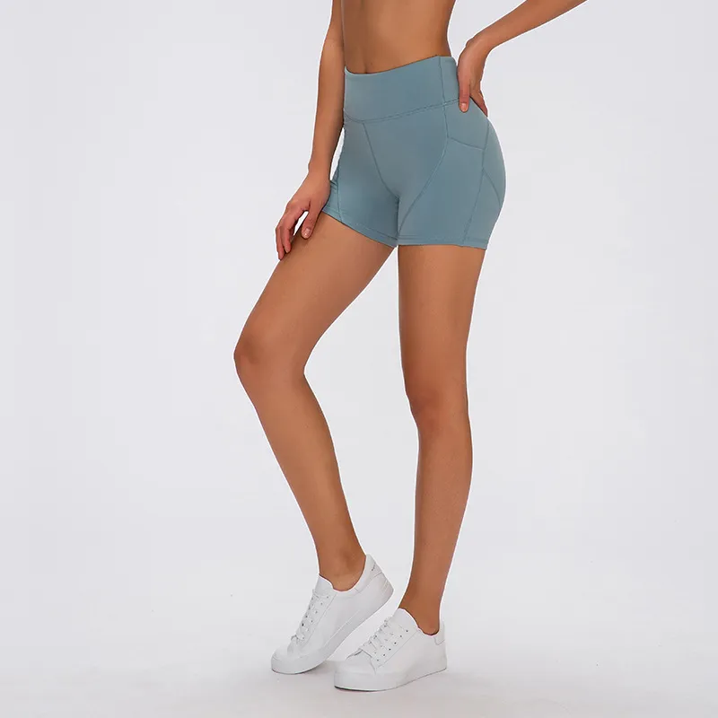 SHINBENE Anti-sweat Plain Sport Athletic Shorts Women High Waisted Soft Cotton Feel Fitness Yoga Shorts with Two Side Pocket