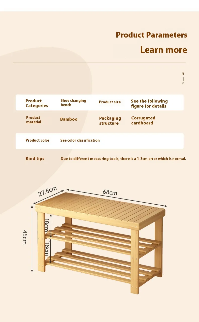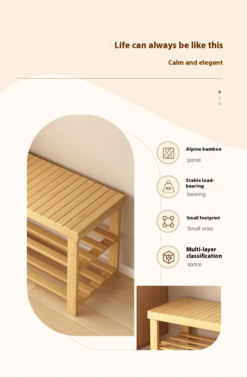 The Shoe Changing Stool Door Home Sitting Shoe Cabinet Stool Integrated Shoe Rack Bamboo Bench is a multifunctional furniture piece designed to enhance the functionality and organization of your entryway, hallway, or mudroom. Combining comfort with practicality, this sleek and stylish bench not only serves as a comfortable seating option for shoe-changing but also offers ample storage for your shoes and other accessories. Made from durable bamboo, this piece of furniture adds a touch of natural elegance to any home while helping to keep your entryway tidy and clutter-free.