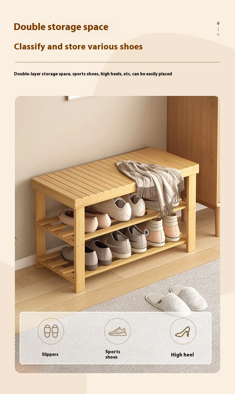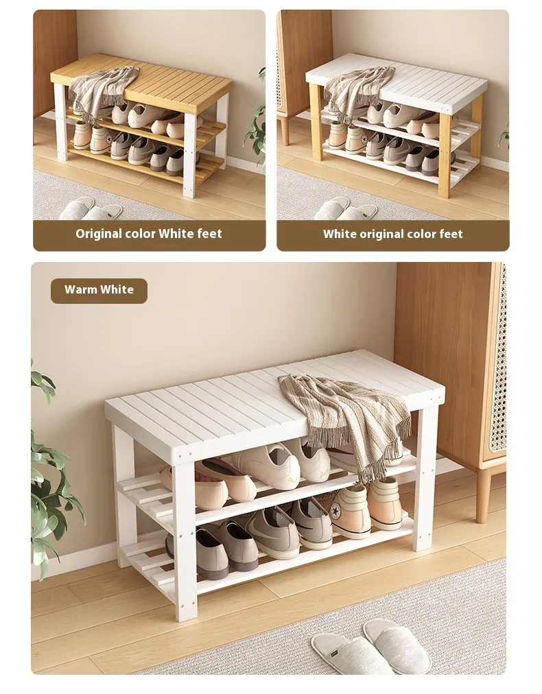 Shoe Changing Stool Door Home Sitting Shoe Cabinet Stool Integrated Shoe Rack Bamboo Bench