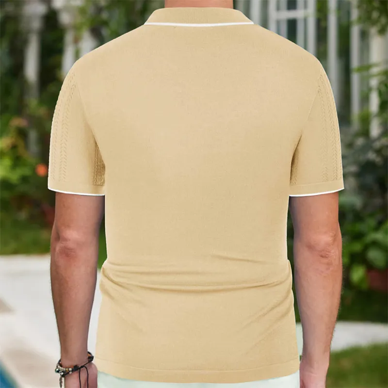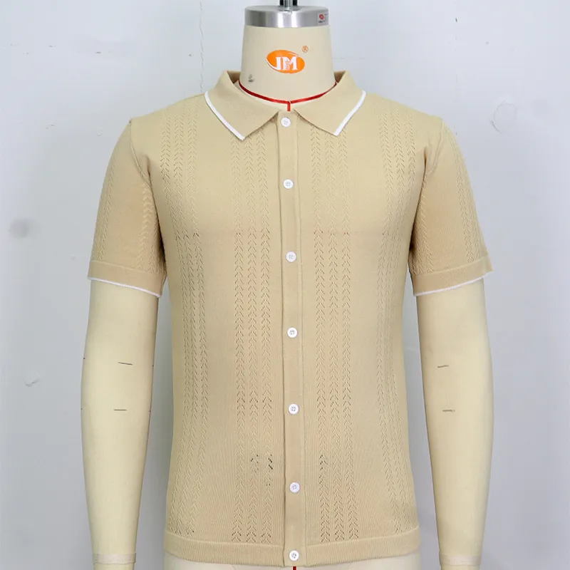 - FEATURES: Short sleeves; Turn down polo collar; Button placket; Hollow knitted fabric texture; Vintage contrast design. Classic solid color design makes it never out of fashion.