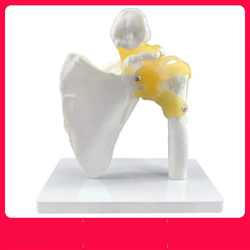 The model accurately depicts the main bones involved in the shoulder joint, including the clavicle, scapula, and humerus, alongside essential ligaments such as the acromioclavicular ligament, coracoacromial ligament, and glenohumeral ligaments. Each structure is carefully crafted to resemble the real anatomy of the shoulder, allowing students and professionals to study the joint's intricate details and understand how these components work together.