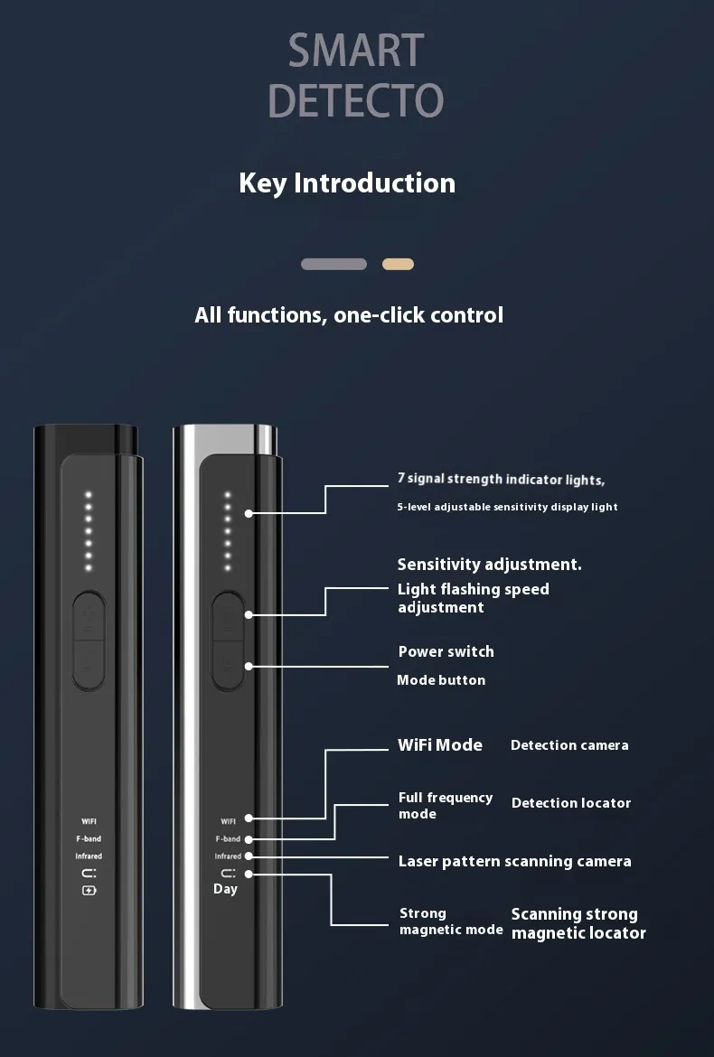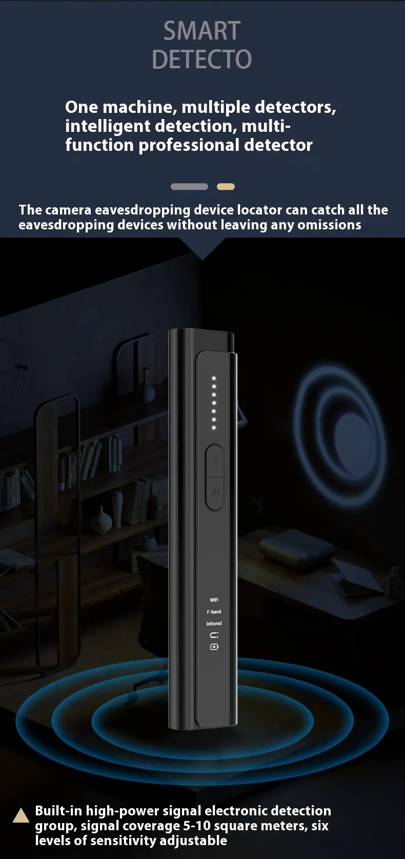 Advanced Signal Detection: Detects both wireless and wired spy cameras, as well as other surveillance devices, by scanning