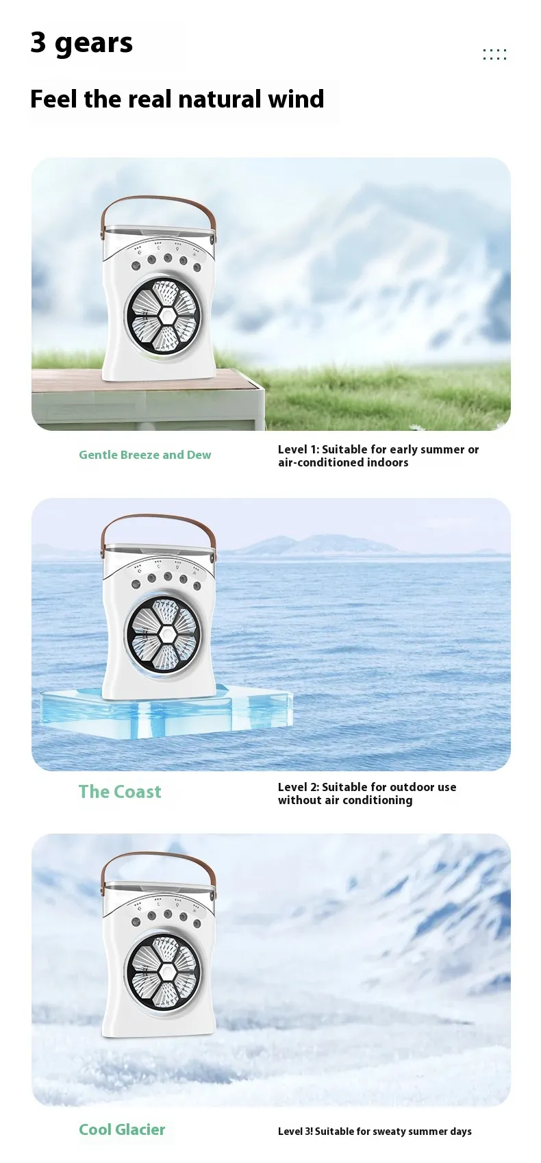 3. Three Adjustable Fan Speeds