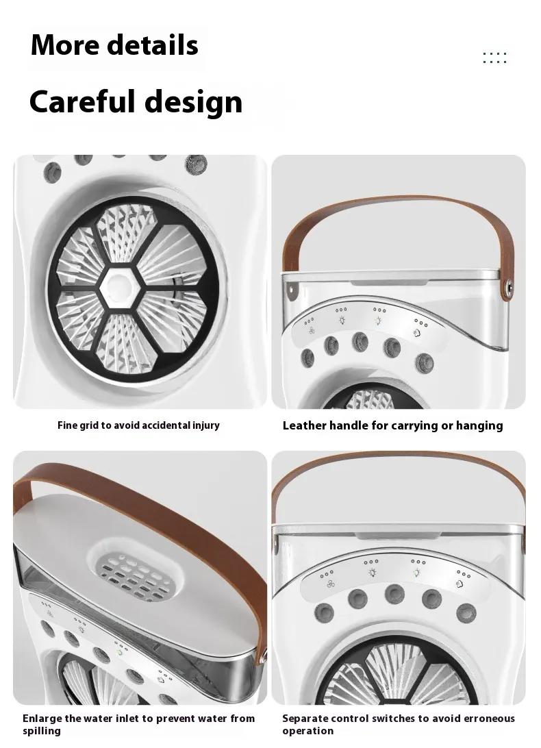 The built-in atomization feature releases a fine mist, which not only cools the air but also adds moisture, preventing dryness in the skin and eyes. This is particularly beneficial in air-conditioned environments where the air can become dry.
