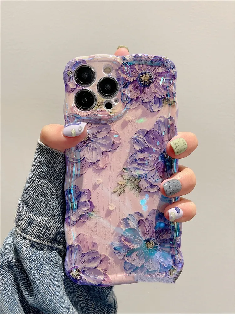Silicone Drop-resistant Oil Painting Flower Phone Case