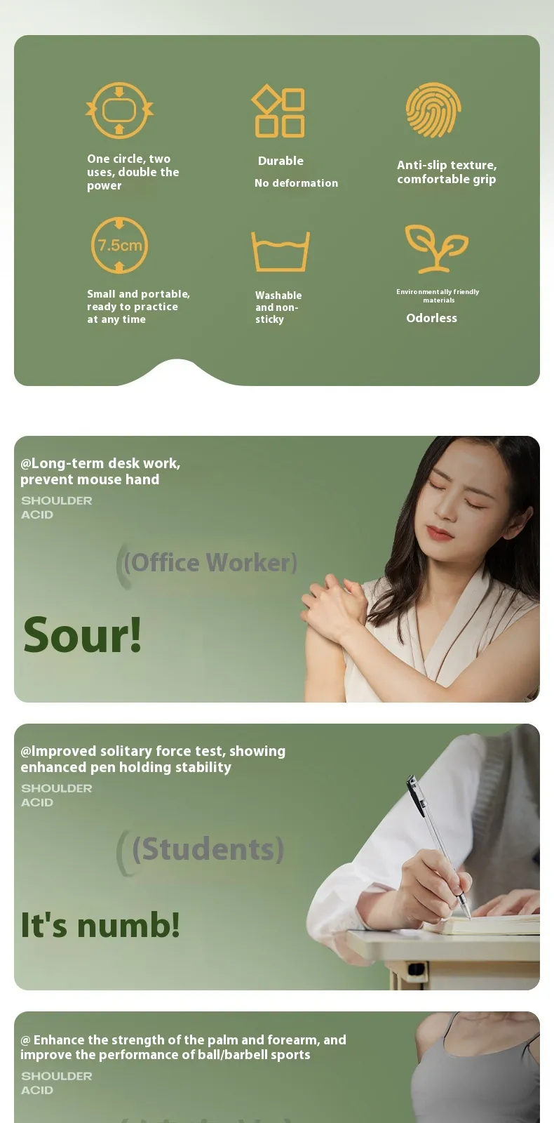 Whether you're an athlete looking to increase your grip for performance, recovering from a wrist or hand injury, or simply aiming to improve your overall hand strength, this tool is designed to help you reach your goals. Its durable silicone spring mechanism provides resistance, offering a customizable experience for users at all levels, from beginners to seasoned athletes.