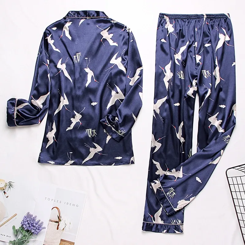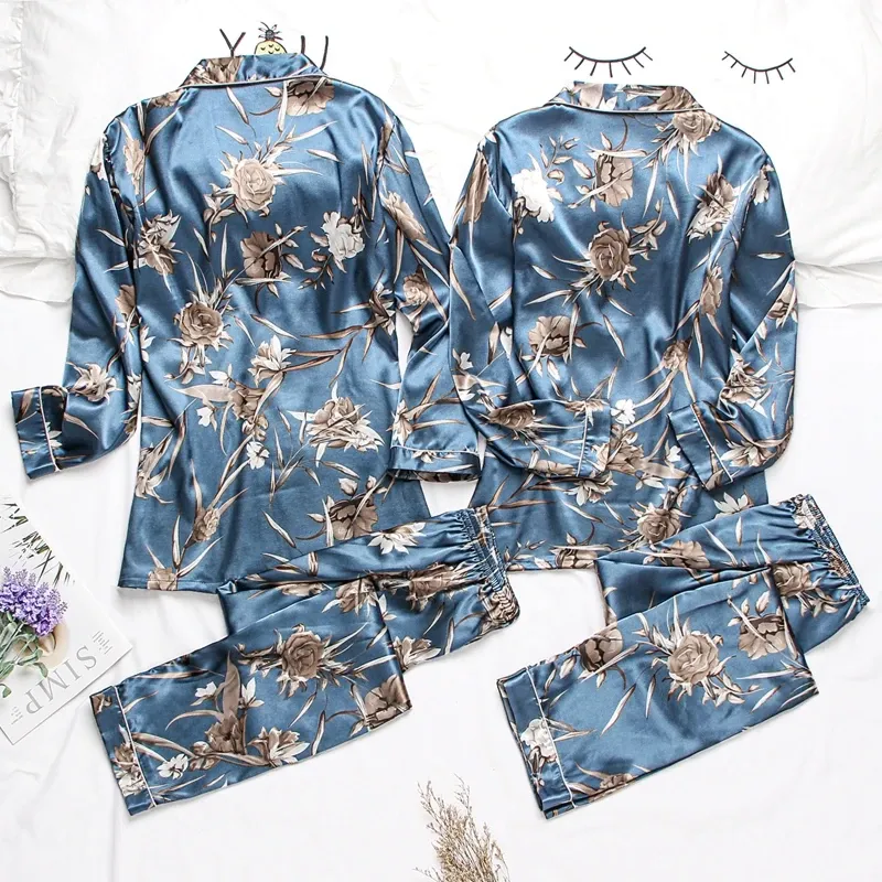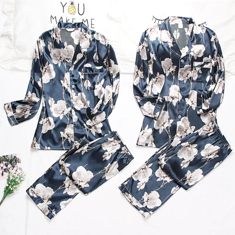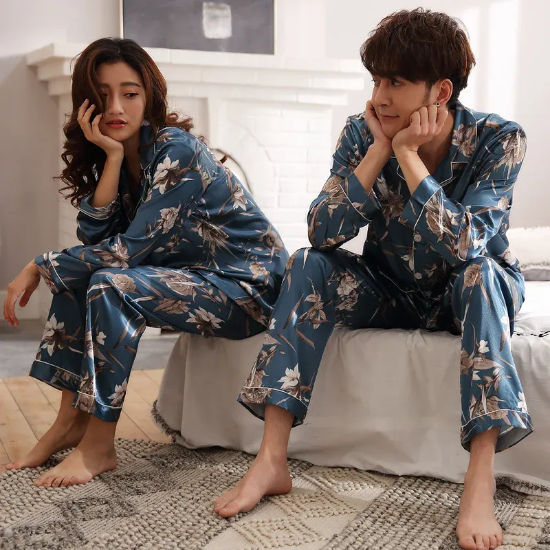 These long-sleeved pajamas are designed with couples in mind, offering matching styles for both men and women. The casual design features a sleek, modern cut that combines both comfort and fashion. The soft texture of the ice silk fabric provides a cool, smooth feel against the skin, making them ideal for those warmer months when you want to feel relaxed and pampered.