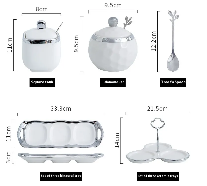 Specifications: round seasoning jar suit (silver edge with leaf spoon), square seasoning jar suit (silver edge with leaf spoon), round