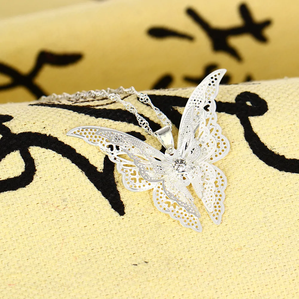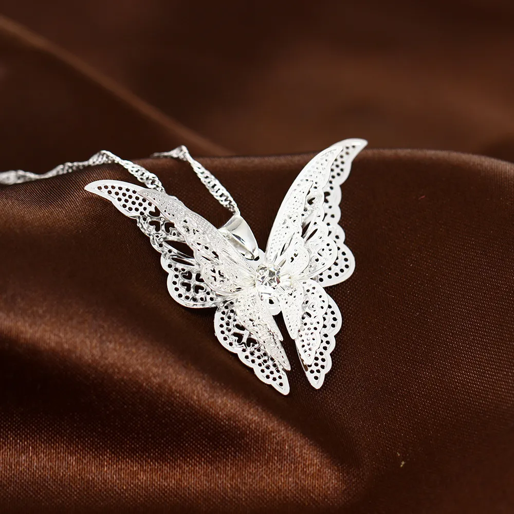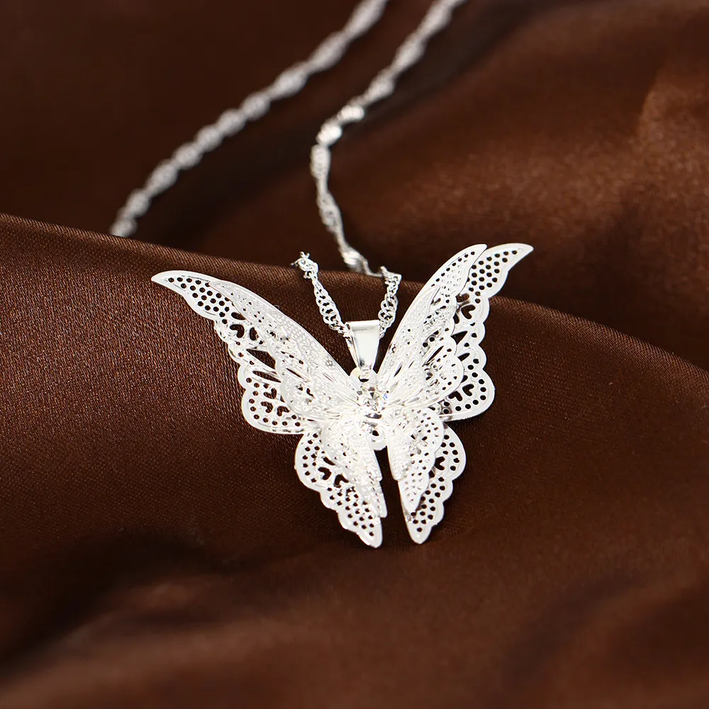Silver Hollow Pointed Butterfly Pendant Necklace
