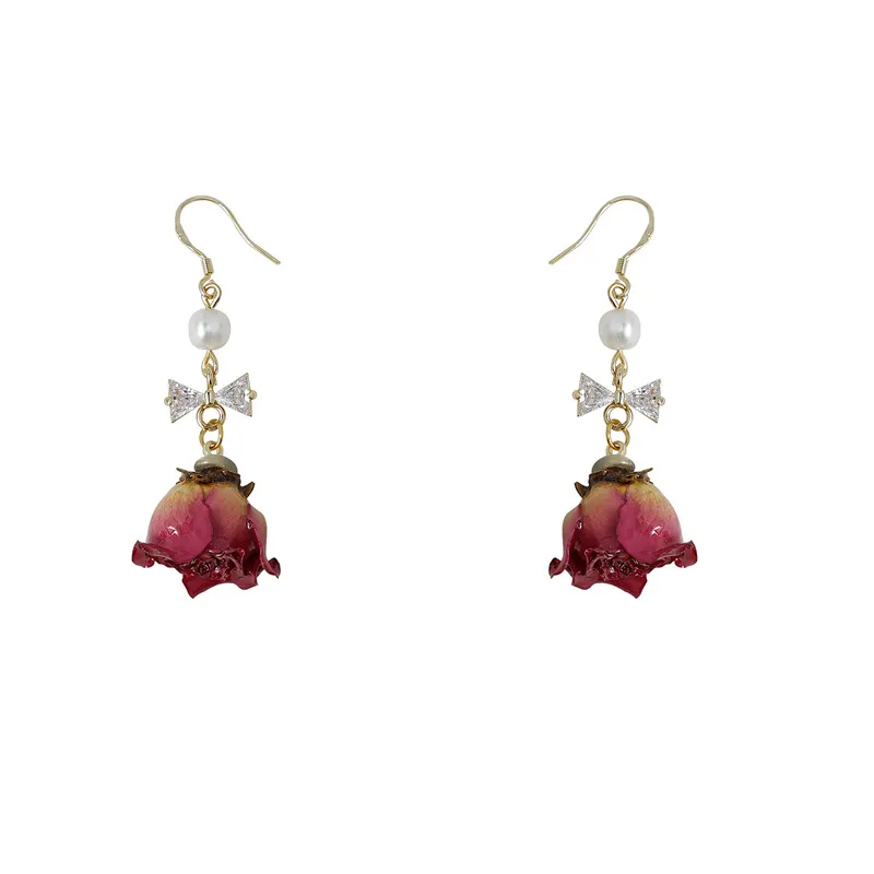 Silver Needle Vintage Hong Kong Air-dried Rose EarringsProduct information: