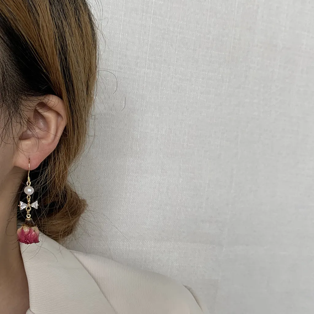 Silver Needle Vintage Hong Kong Air-dried Rose EarringsProduct information: