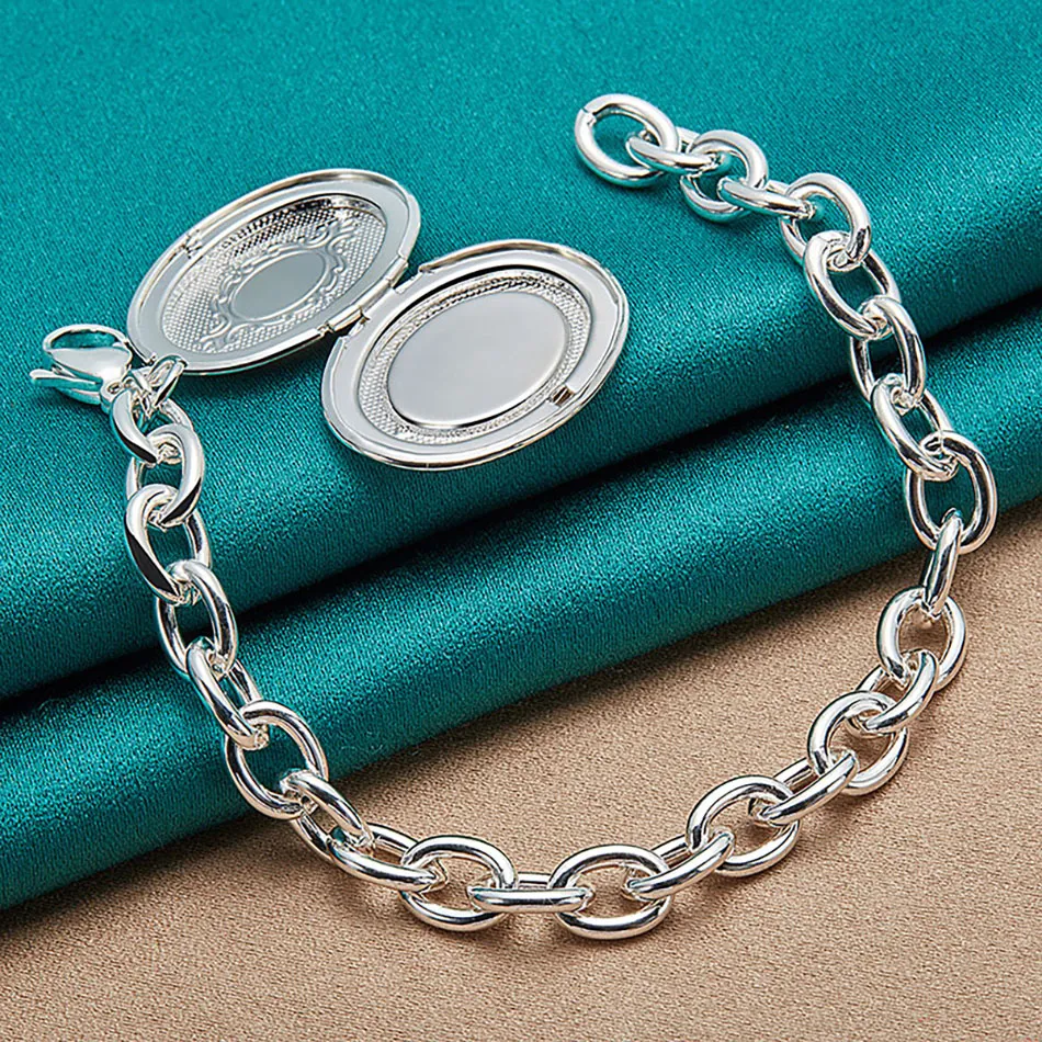 Silver Oval Box Double Pendant Bracelet