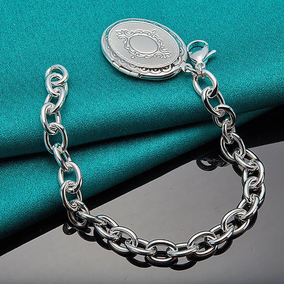 Silver Oval Box Double Pendant Bracelet