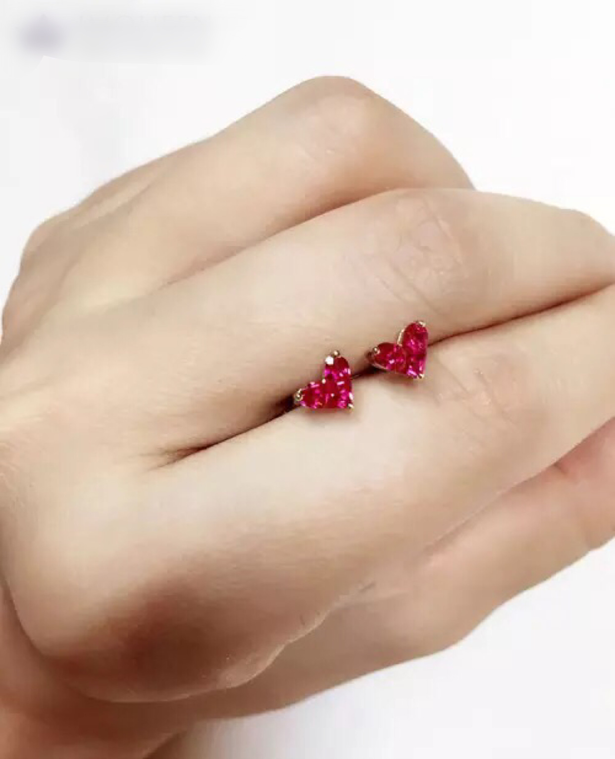 Silver Ruby Love Heart Stud Earrings Women's Heart