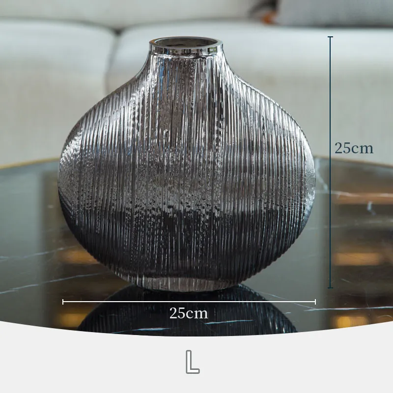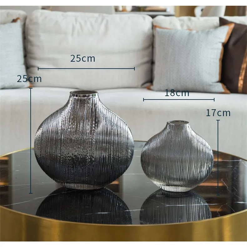 Silver Striped Glass Vase Flower Arrangement Hydroponic Accessories Modern Home Decor Accessories