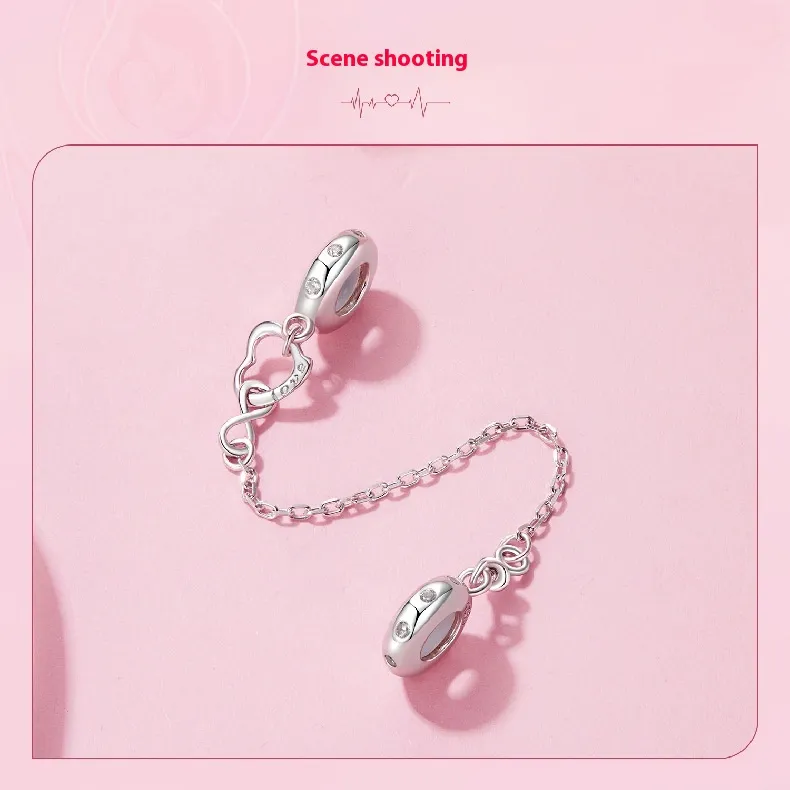 Silver Ziyun Infinite Love Silicone Safety Chain 925 Silver DIY Bracelet String Beads Sub-accessories Charm Mother's Day