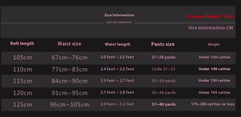 Length (CM):105cm,110cm,115cm,120cm,125cm