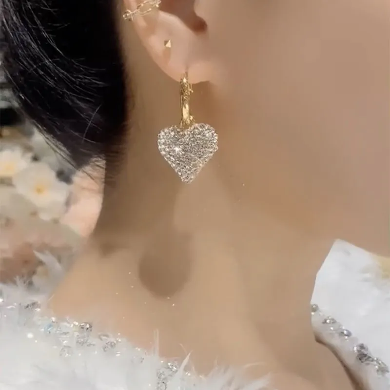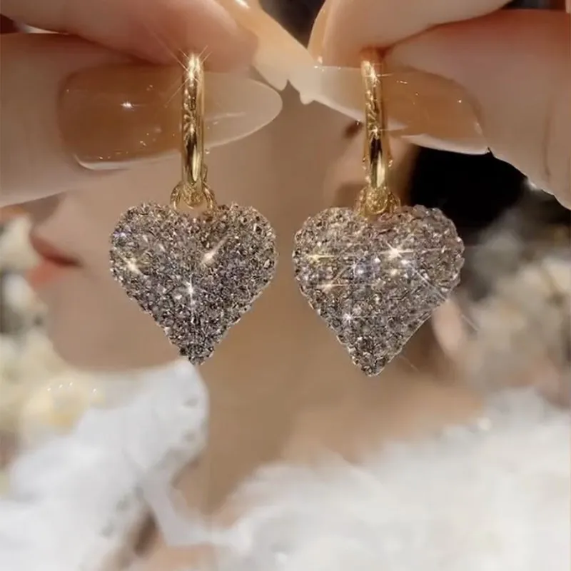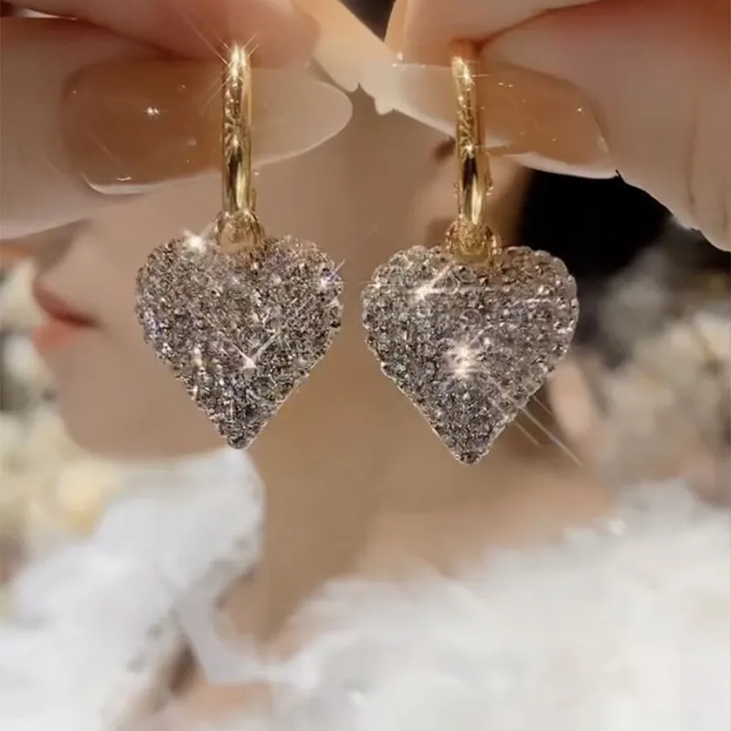 Color: Gold fully jeweled loving heart earrings
