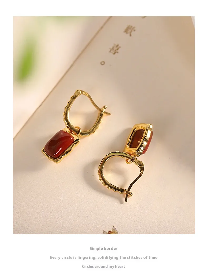 Simple Fashion Gold Plated Southern Red Agate Women's Earrings