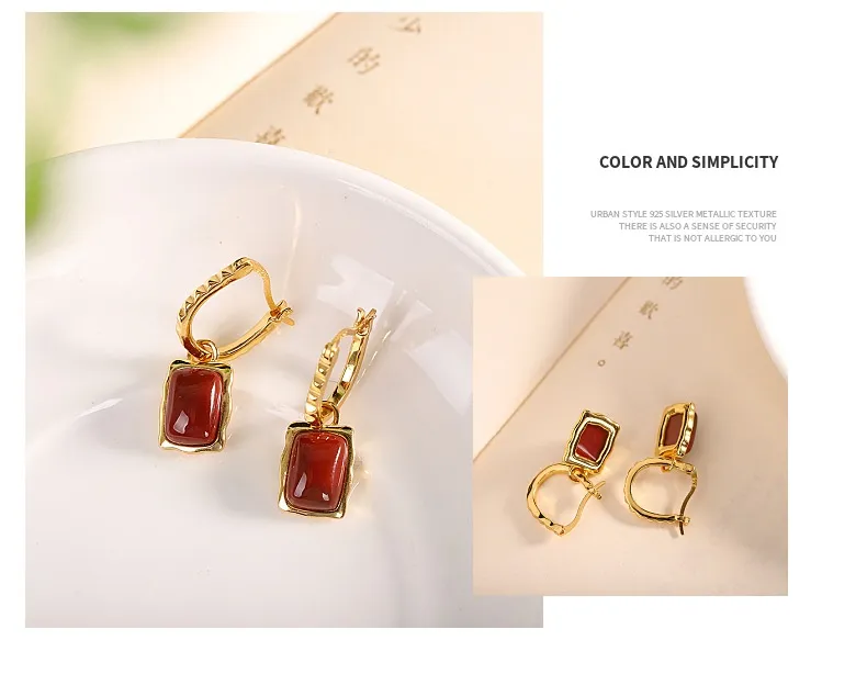 How to Style the Simple Fashion Gold Plated Southern Red Agate Women's Earrings