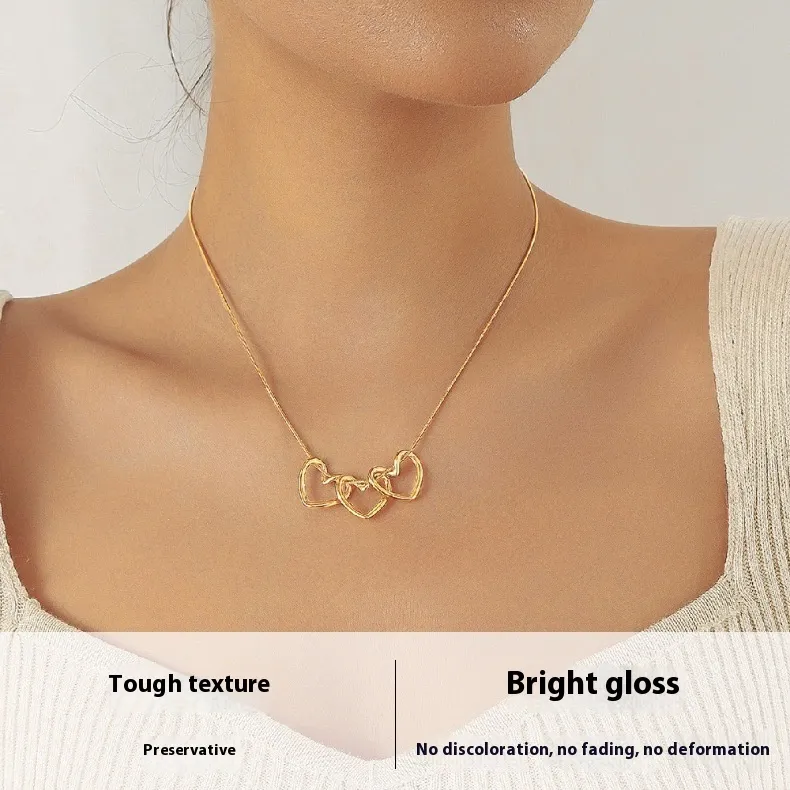Simple Gold-plated Love Connection Pendant Chain Stainless Steel Necklace