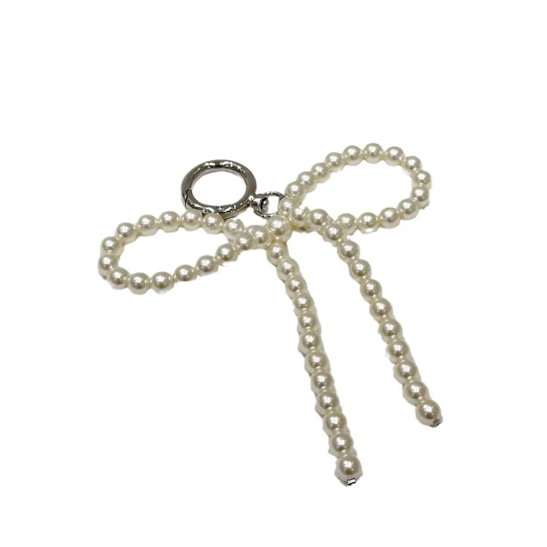 Simple Ins Style Beaded Pearl Bowknot Bag Bag Charm Mobile Phone Charm
