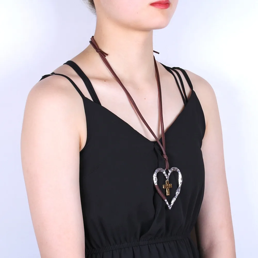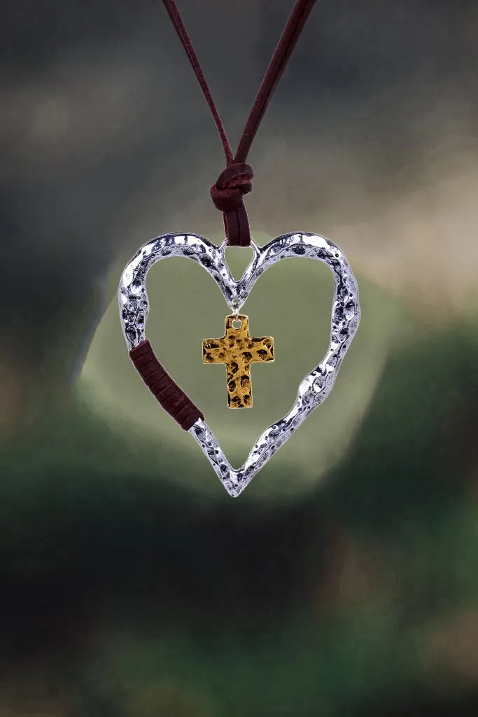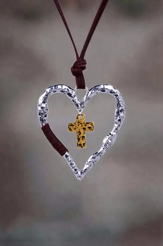 Simple Retro Cross Heart Pendant Necklace