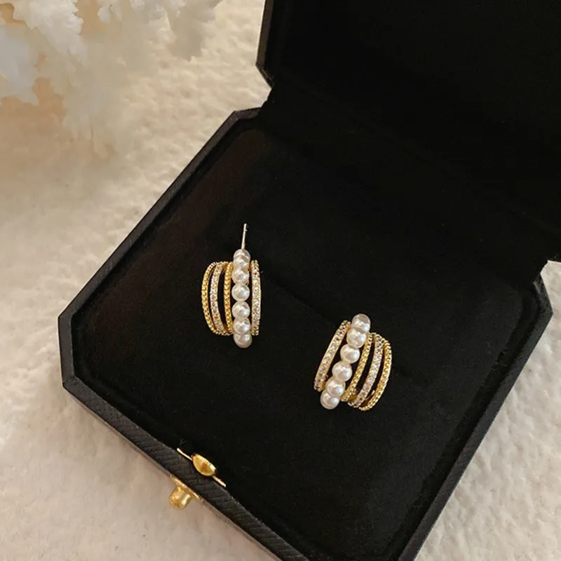 Simple Temperament All-match Small Multi-circle Zircon Earrings