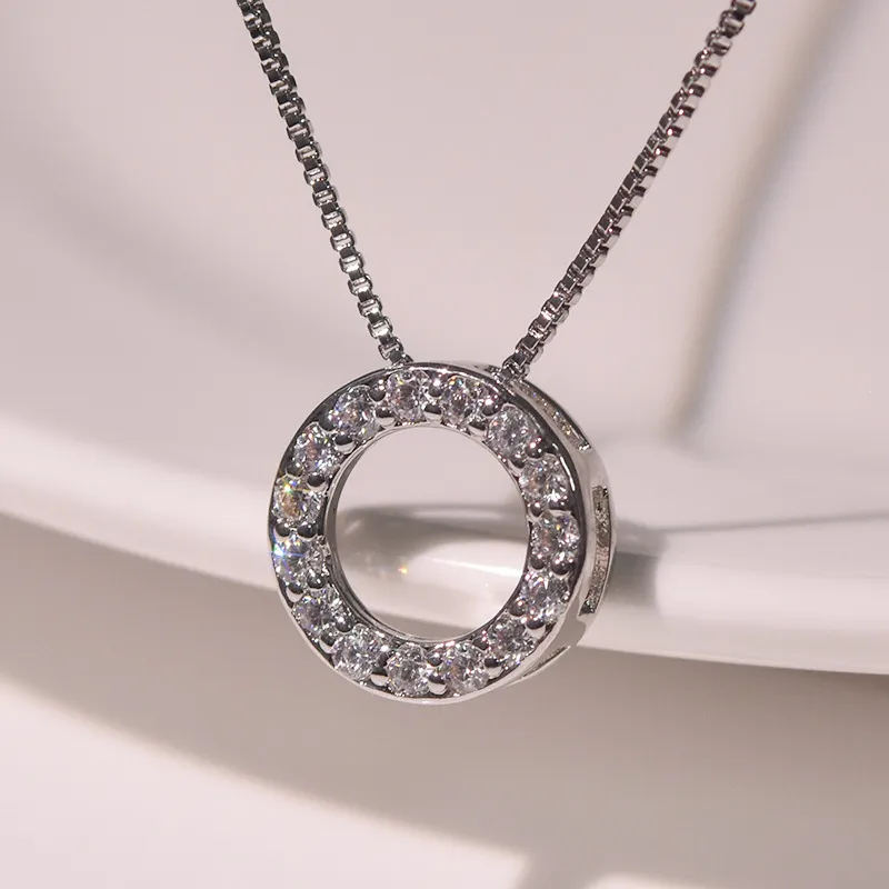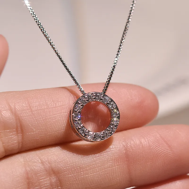 Simple temperament full diamond circle pendant