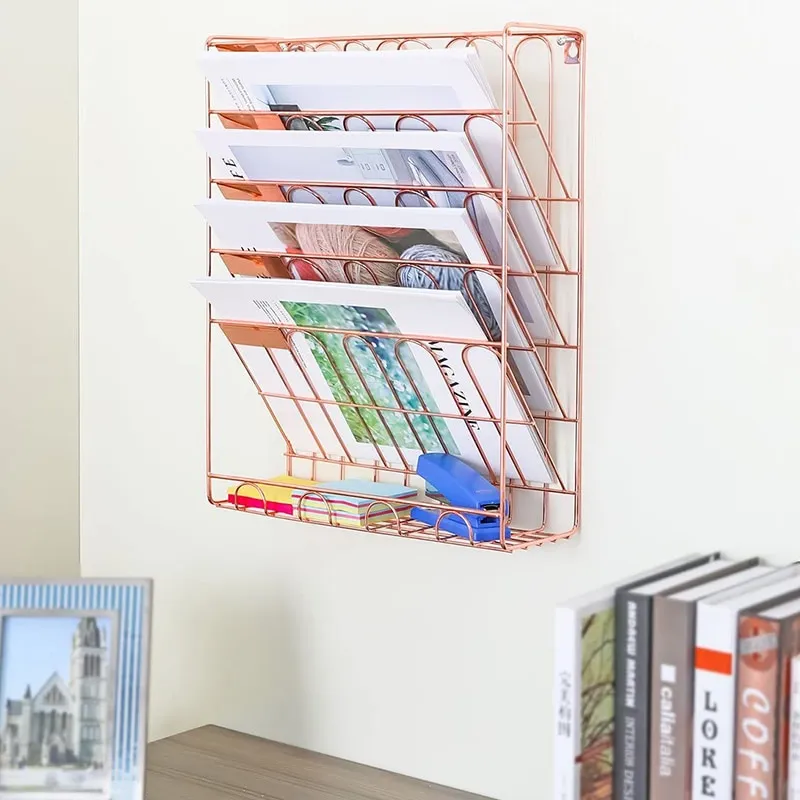 The open and accessible design of the rack makes it easy to organize your reading materials or office supplies in a way that suits your needs, adding both functionality and style to your space.