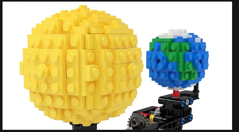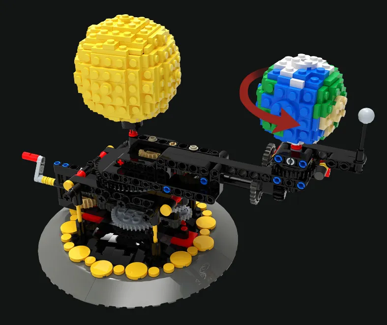 - Place the Earth (with Moon in orbit) on a larger circular path around the lamp.