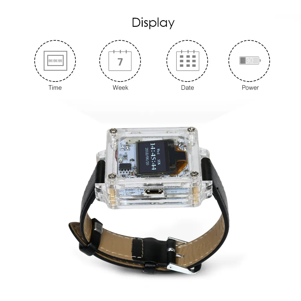 Once assembled, the watch is lightweight and compact, making it easy to wear and carry. Its design is perfect for those who enjoy portable electronics projects or who simply want a fun and functional DIY digital watch. The small size of the components and the transparent case ensures that the watch maintains a sleek, modern appearance without being bulky.