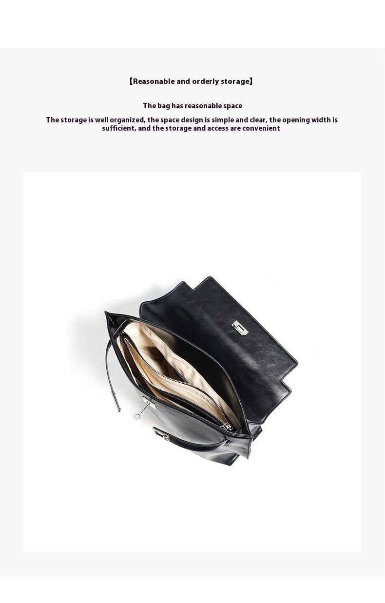 Single Double-shoulder All-matching Large Capacity Premium Leather Handbag