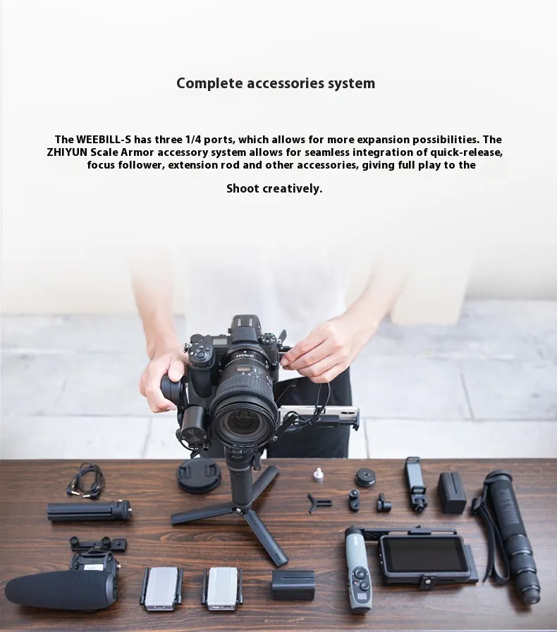Designed for both mirrorless cameras and Single Lens Reflex (SLR) cameras, the stabilizer is compatible with a wide range of camera models and lens sizes. Whether you're using a lightweight mirrorless camera or a heavier DSLR setup, this stabilizer provides a secure and stable platform, offering the flexibility to shoot a variety of content with complete ease. It also supports action cameras for those interested in extreme sports or handheld video filming.