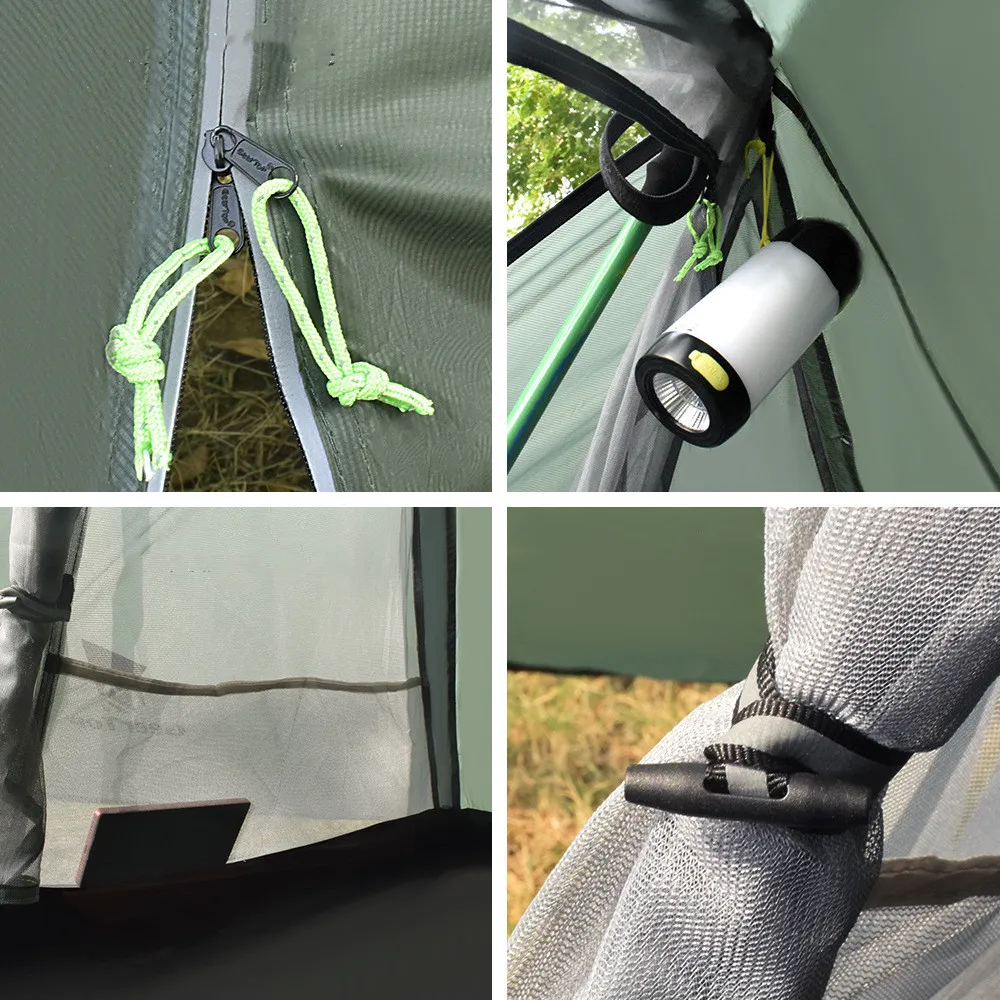 This tent is designed with ventilation in mind. The mesh windows and breathable fabric allow air to circulate throughout the tent, keeping the interior fresh and reducing the buildup of moisture. This feature is particularly useful when camping in warmer weather or during the summer months in New Zealand, where the temperatures can be warm during the day and chilly at night.